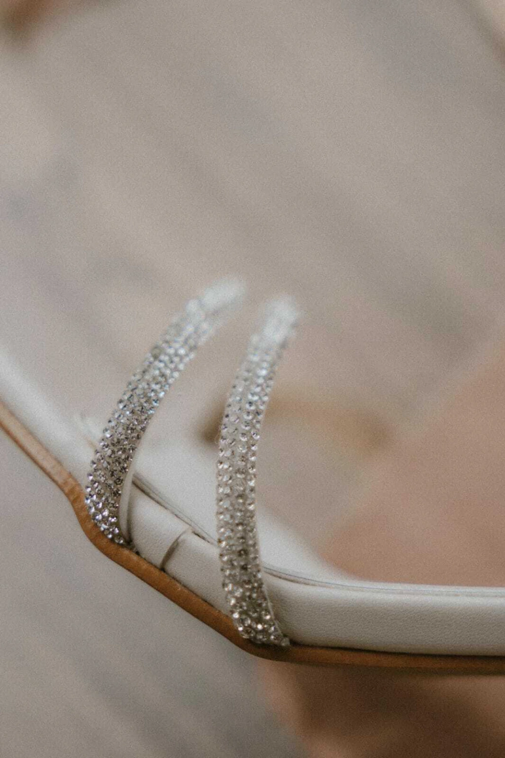 Sandália com duas tira de strass, fechado no calcanhar com um laço atrás